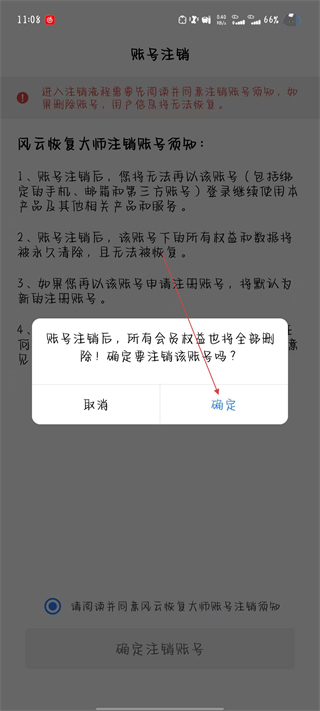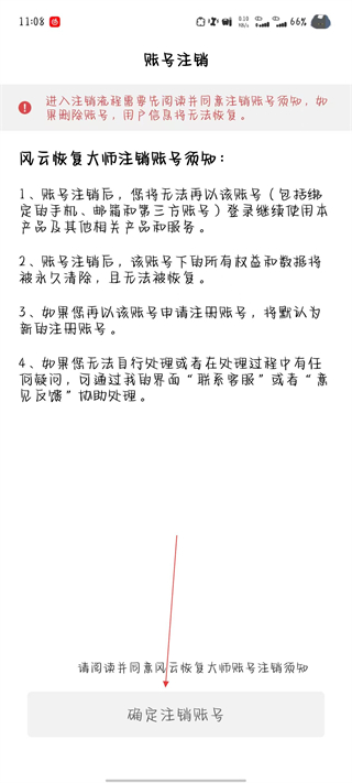 3、進(jìn)入賬號注銷頁面后,點擊確定注銷賬號按鈕。