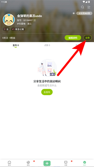 2、在個(gè)人頁(yè)面中,點(diǎn)擊設(shè)置按鈕,進(jìn)入設(shè)置界面。