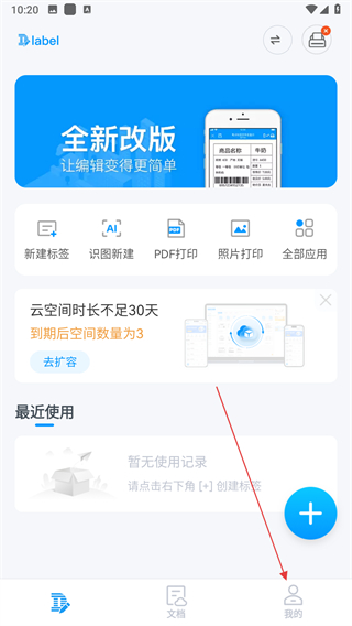 1、打開Dlabel云標(biāo)簽應(yīng)用,點(diǎn)擊我的選項(xiàng),進(jìn)入個(gè)人中心。