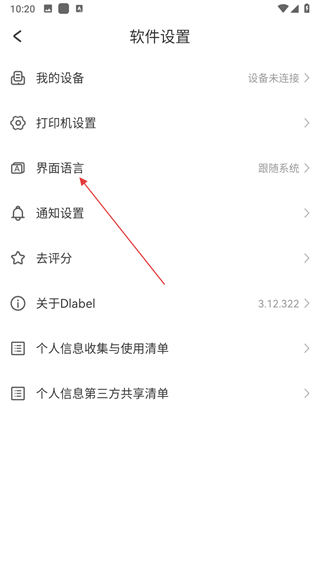 3、在軟件設(shè)置界面,找到界面語言選項(xiàng),點(diǎn)擊該選項(xiàng)。