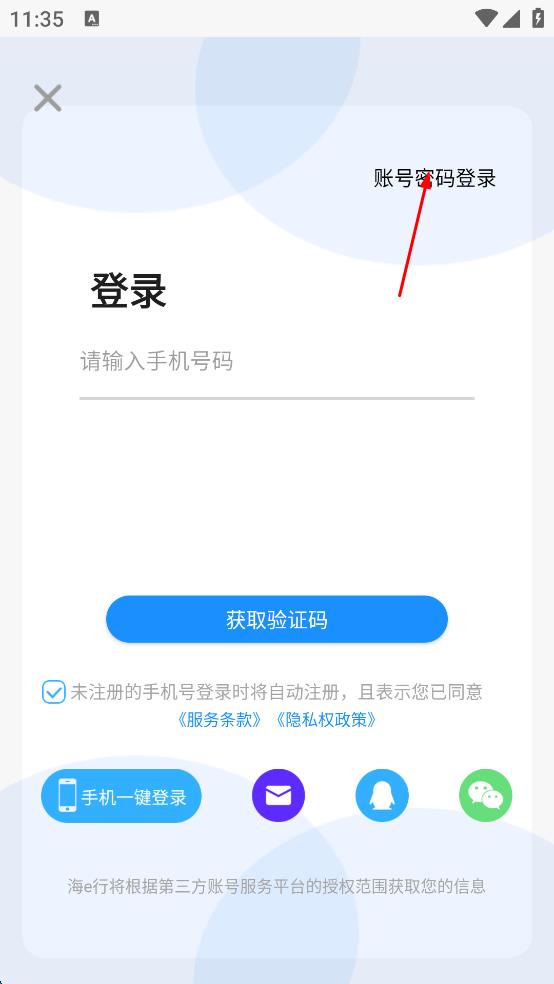 4、勾選“未注冊的手機(jī)號登錄時(shí)將自動(dòng)注冊,且表示您已同意服務(wù)條款,隱私權(quán)政策,然后點(diǎn)擊藍(lán)色的“登錄”按鈕。