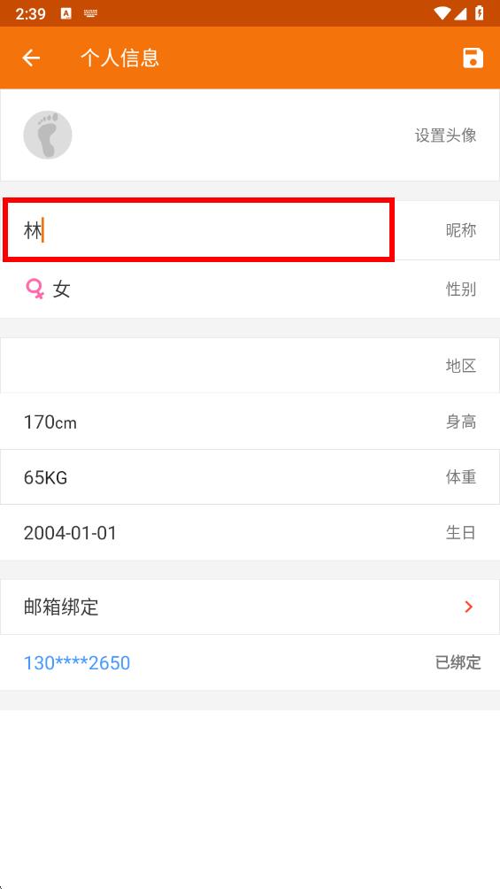3、在個人信息編輯頁面中,點(diǎn)擊昵稱對應(yīng)的輸入框,刪除原昵稱并輸入想要修改的新名字。