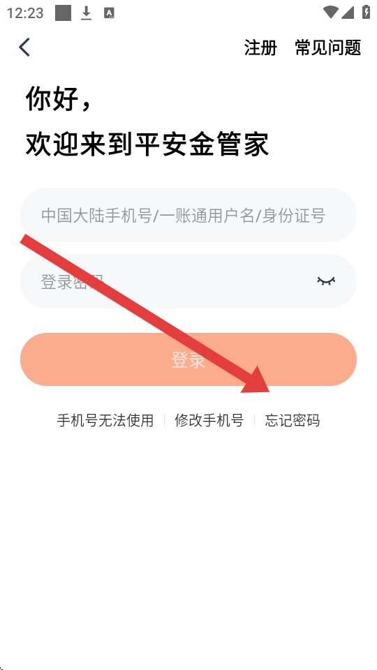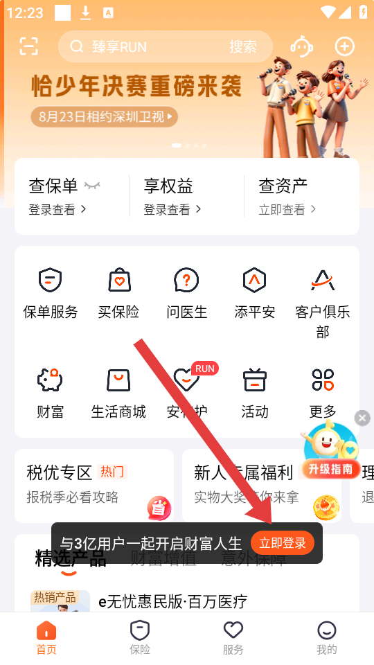 1、打開平安金管家APP的首頁,點擊頁面中間懸浮提示框內(nèi)的立即登錄按鈕,進入賬號登錄界面。