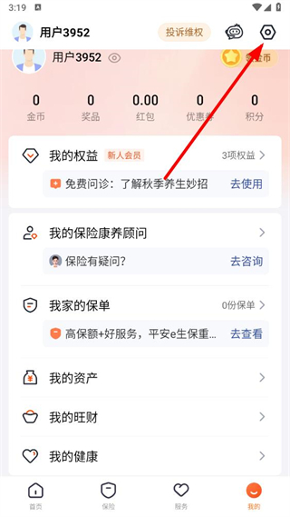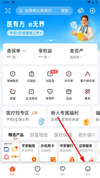 1、打開平安金管家app,點擊底部導(dǎo)航欄中我的選項。