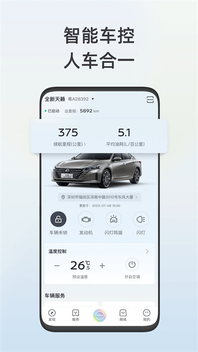 注:因車型、車型版本配置的不同,日產(chǎn)智聯(lián)APP所提供的功能有所區(qū)別。