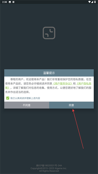 1、打開批量圖片縮放APP,進入時會彈出溫馨提示,點擊同意的按鈕。