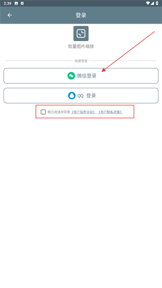 4、在登錄的頁面內(nèi),勾選已同意用戶服務協(xié)議后點擊微信登錄即可。