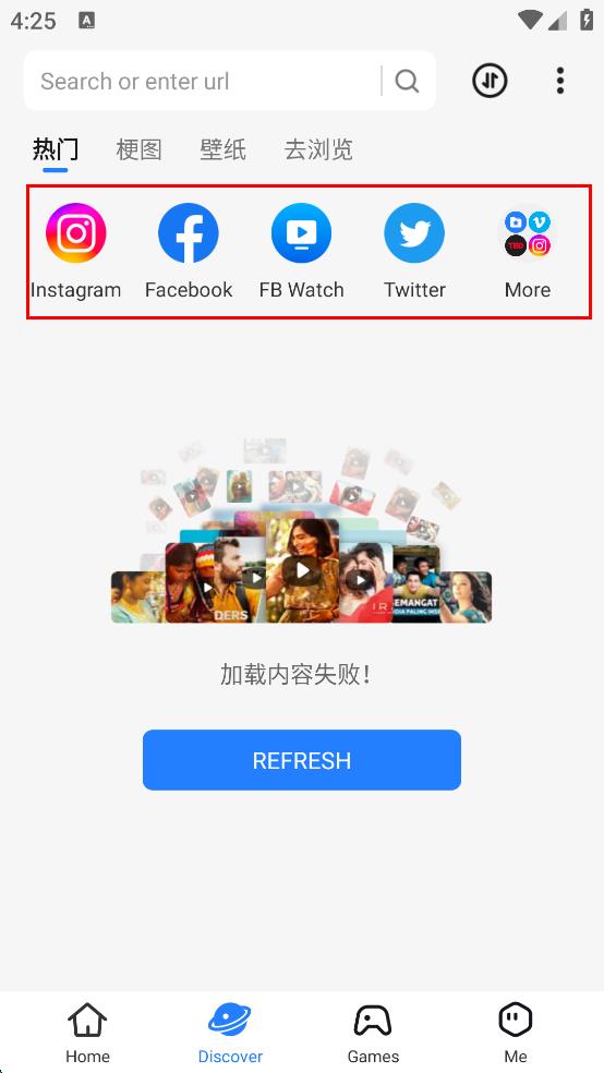 4、返回主界面,點(diǎn)擊底部“Discover”選項(xiàng),進(jìn)入發(fā)現(xiàn)頁面,可看到各類社交平臺(tái)圖標(biāo),嘗試點(diǎn)擊相關(guān)圖標(biāo),瀏覽或獲取對(duì)應(yīng)平臺(tái)的內(nèi)容。