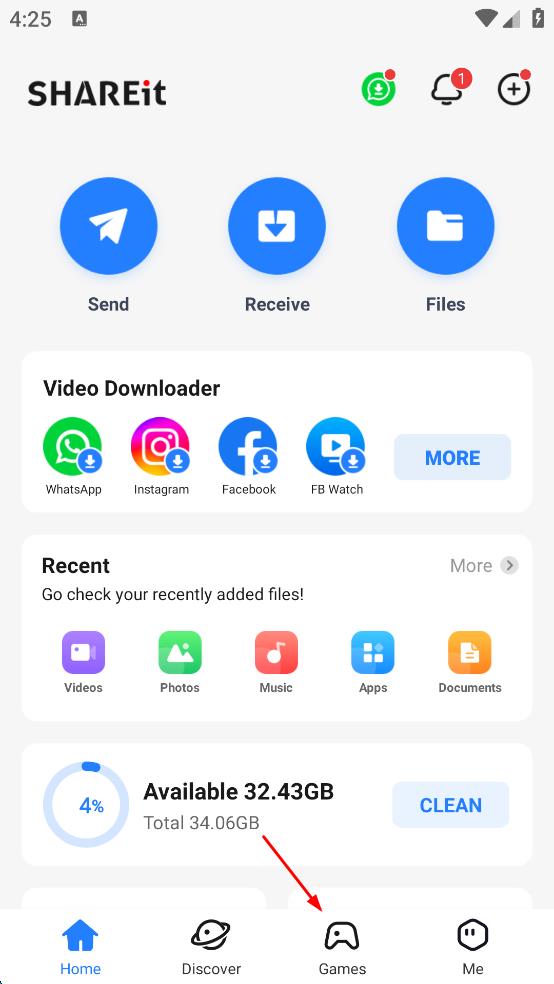 2、在應(yīng)用主界面,點(diǎn)擊底部“Games”選項(xiàng),進(jìn)入游戲相關(guān)頁面,瀏覽各類游戲推薦。