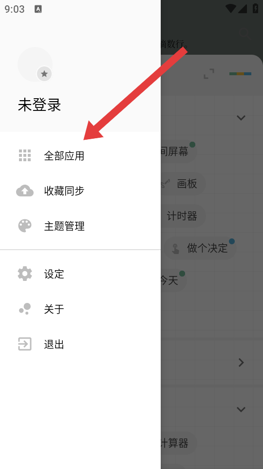2、在側邊欄中,點擊全部應用的選項,進入全部應用列表的頁面。