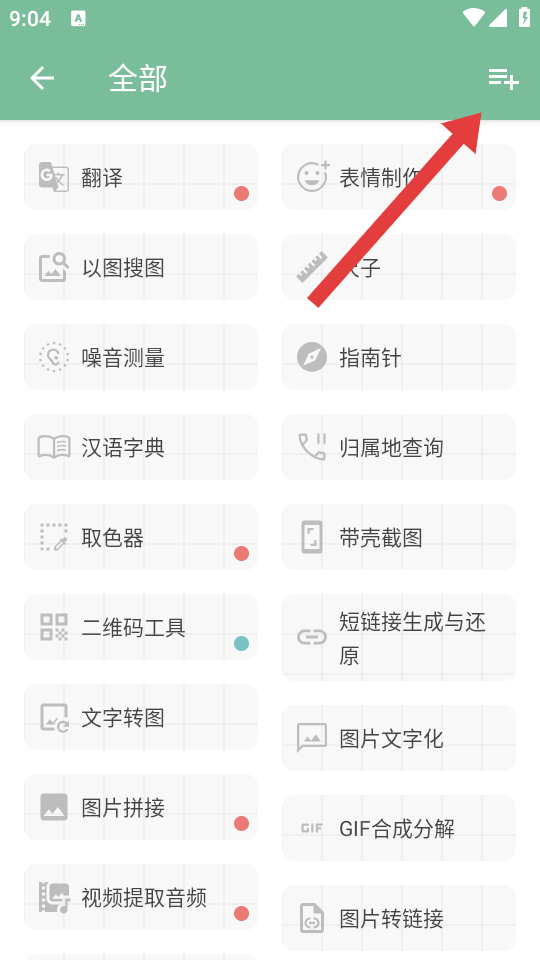 3、在全部應用頁面,點擊右上角的三+圖標,進入添加小組件選擇界面。
