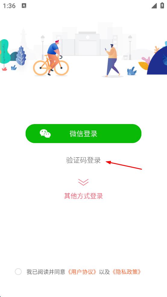 2、在登錄選擇頁面,點擊“驗證碼登錄”,進入手機號和驗證碼輸入頁面。