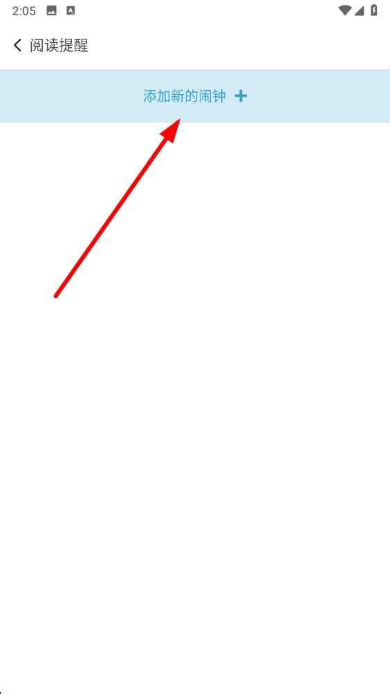 3、在閱讀提醒設(shè)置頁面,點(diǎn)擊添加新的鬧鐘選項(xiàng)。