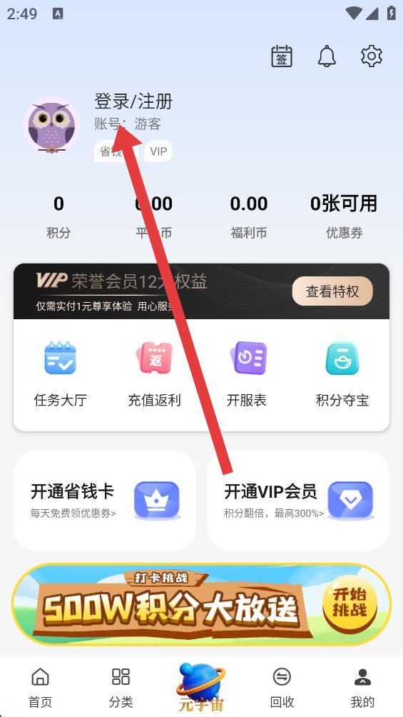 2、在我的頁面中,點擊頭像旁的登錄/注冊選項。