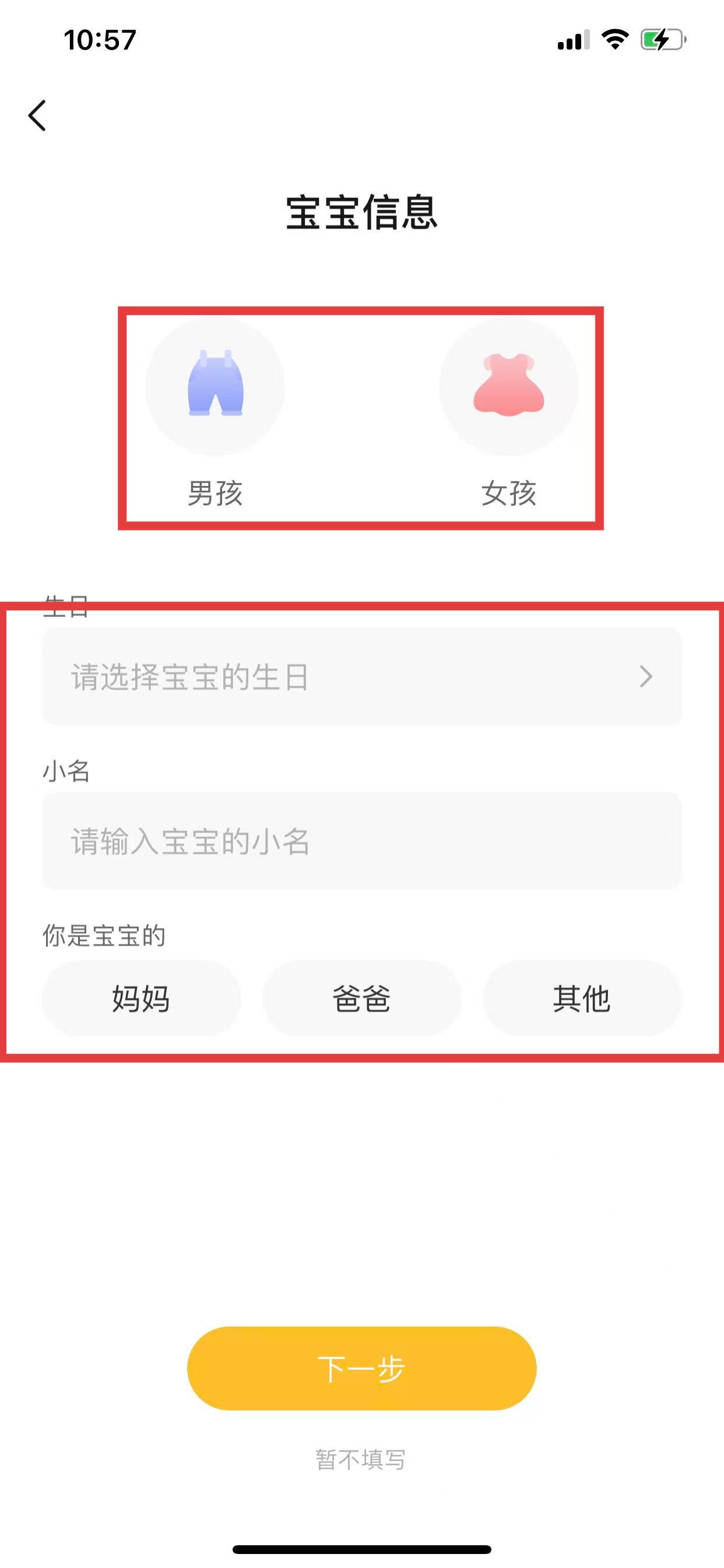 4、進(jìn)入添加家庭成員頁面,填寫寶寶信息,即可成功添加第二個寶寶信息。