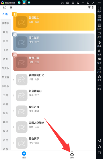 1、首先打開(kāi)游戲盒子,進(jìn)入軟件后點(diǎn)擊界面右下角【我的】;
