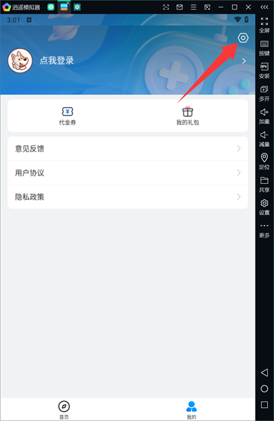 2、進(jìn)入個(gè)人功能界面后,點(diǎn)擊右上角的設(shè)置功能按鈕;