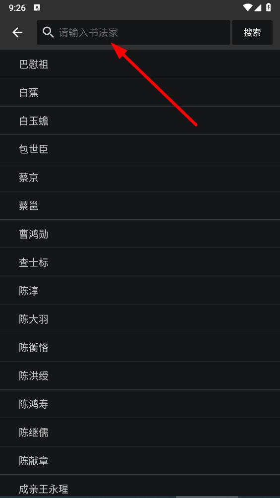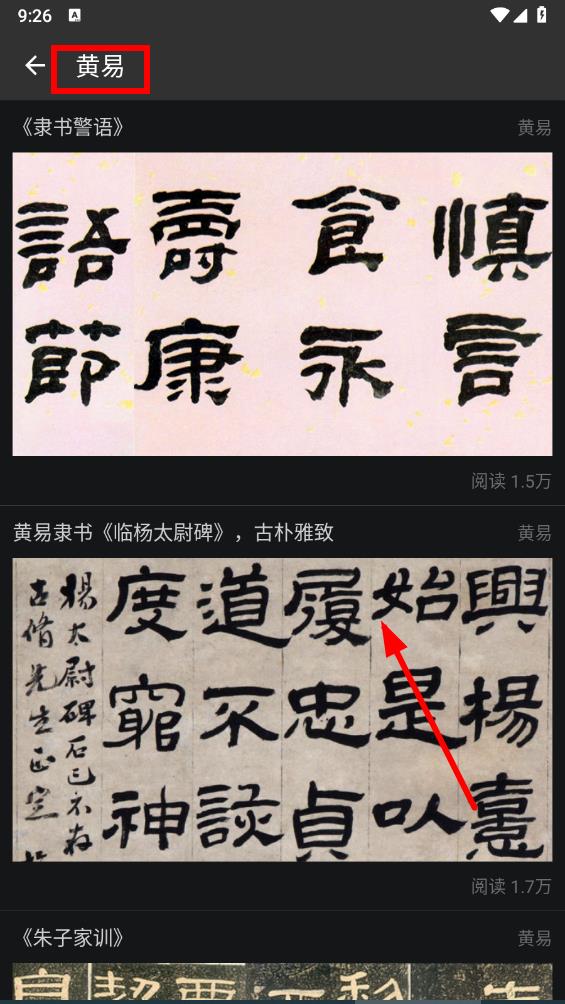 3、在搜索欄中輸入想要查找的書法家名字,比如黃易,點(diǎn)擊搜索。