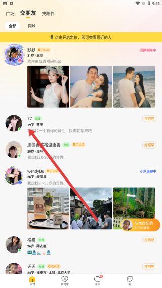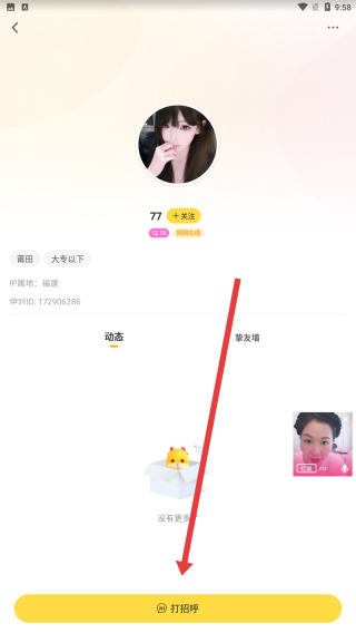 2、在進(jìn)入到這個(gè)用戶空間中時(shí),可以點(diǎn)擊下方的打招呼按鈕,進(jìn)行打招呼。