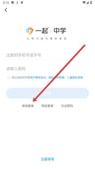 1、在一起中學(xué)登錄頁面,可以點(diǎn)擊下方其他登錄按鈕,使用其他平臺(tái)登錄。