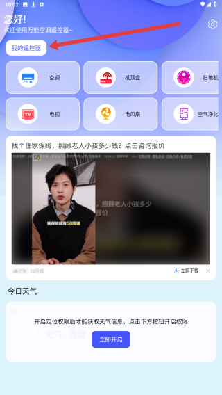 2、進入應用主界面后,可以通過點擊左上角我的遙控器選項,切換至設備管理頁面。
