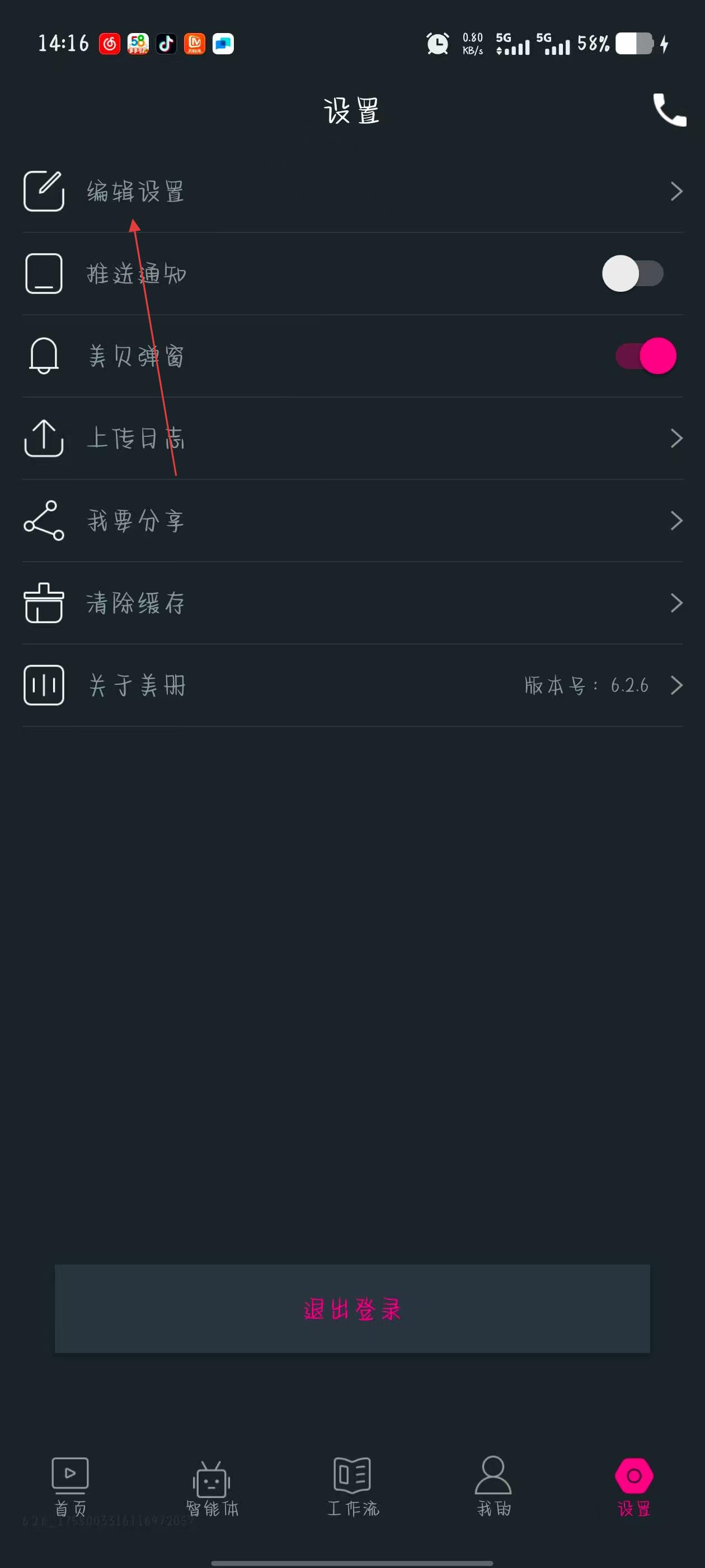 2、在設置頁面中,找到編輯設置選項并點擊,進入編輯設置界面。