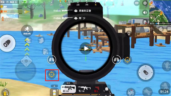 4、當調整好游戲的視角之后,玩家要是想要進行精準瞄準,可以點擊屏幕中間的瞄準鏡,以進行放大。