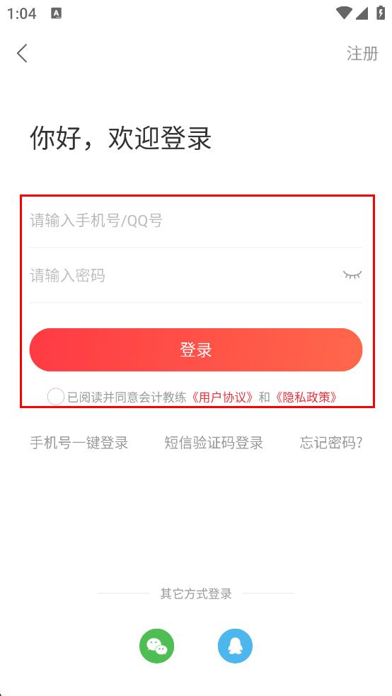 4、在登錄界面,輸入手機號或QQ號,接著輸入密碼,勾選已閱讀并同意相關協(xié)議,最后點擊登錄按鈕。