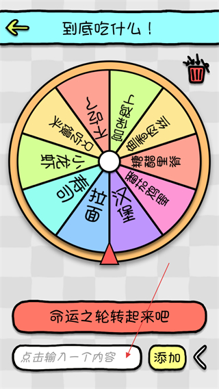 使用方法很簡單,創(chuàng)建幾個屬于自己的選擇器(目前最多6個),在轉盤上添加你希望的內容(目前最多36個),點擊按鈕轉盤旋轉,當轉盤停止時指針會為你指引最終的選擇!隨時隨地幫你解決各種選擇困難癥!