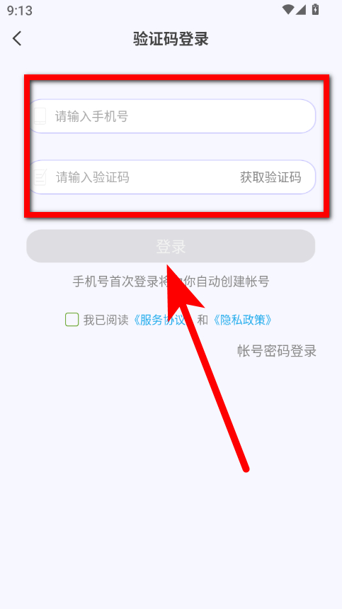 4、在驗(yàn)證碼登錄界面,輸入手機(jī)號(hào)和驗(yàn)證碼后點(diǎn)擊登錄,即可完成手機(jī)號(hào)登錄操作。