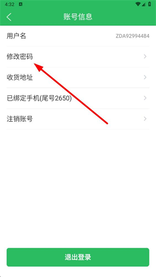 4、在賬號(hào)信息頁(yè)面,點(diǎn)擊修改密碼選項(xiàng),進(jìn)入修改密碼頁(yè)面。