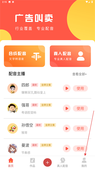 1、打開廣告叫賣錄音APP,在首頁內(nèi)點(diǎn)擊右下角我的圖標(biāo)。