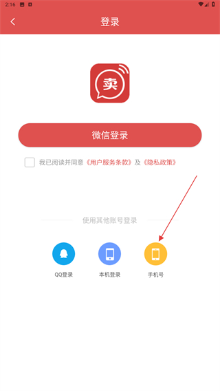3、在登錄的頁面內(nèi),點(diǎn)擊手機(jī)號(hào)的登錄按鈕。