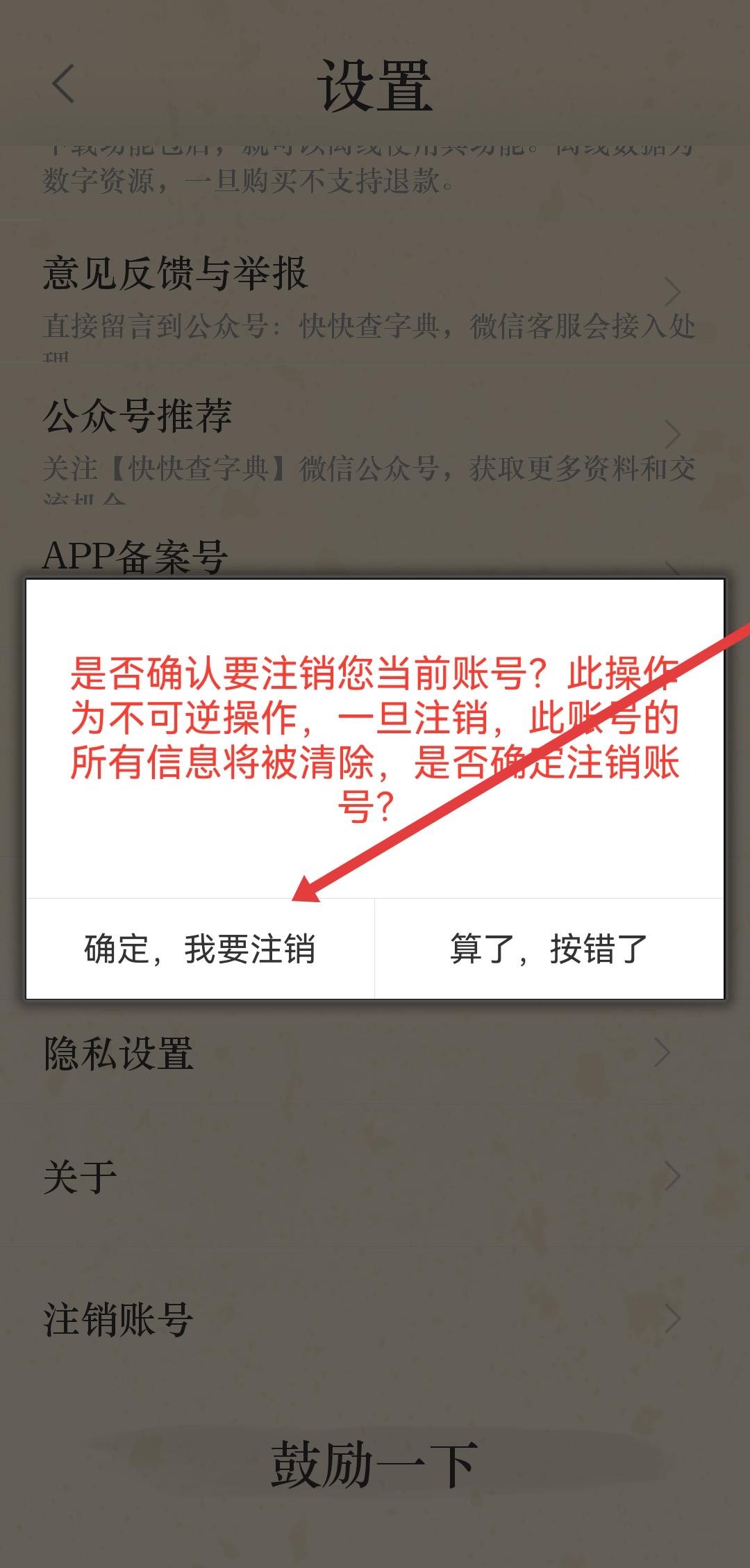 3、在設(shè)置界面里,點擊注銷賬號選項,彈出賬號注銷確認彈窗。