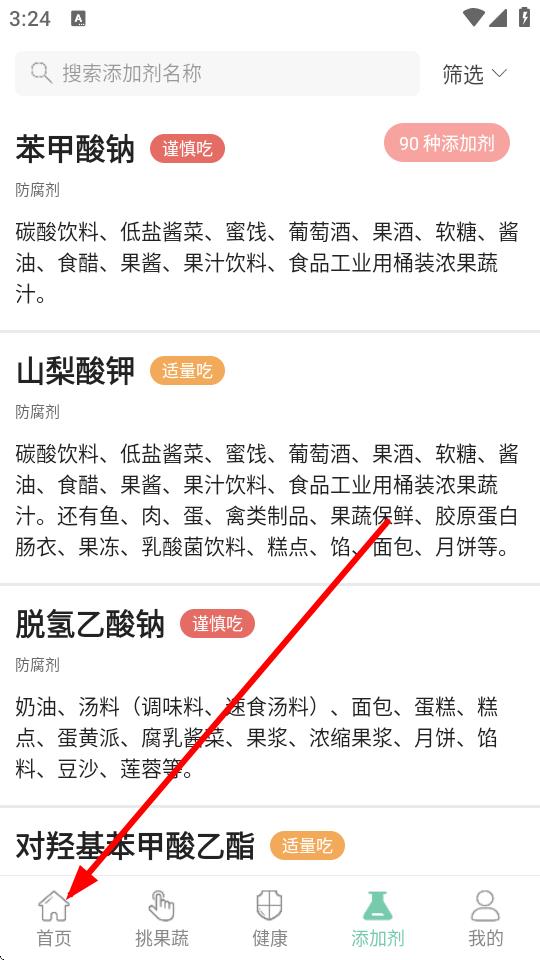 1、打開果蔬百科app,點(diǎn)擊底部導(dǎo)航欄中的首頁(yè),回到首頁(yè)界面。