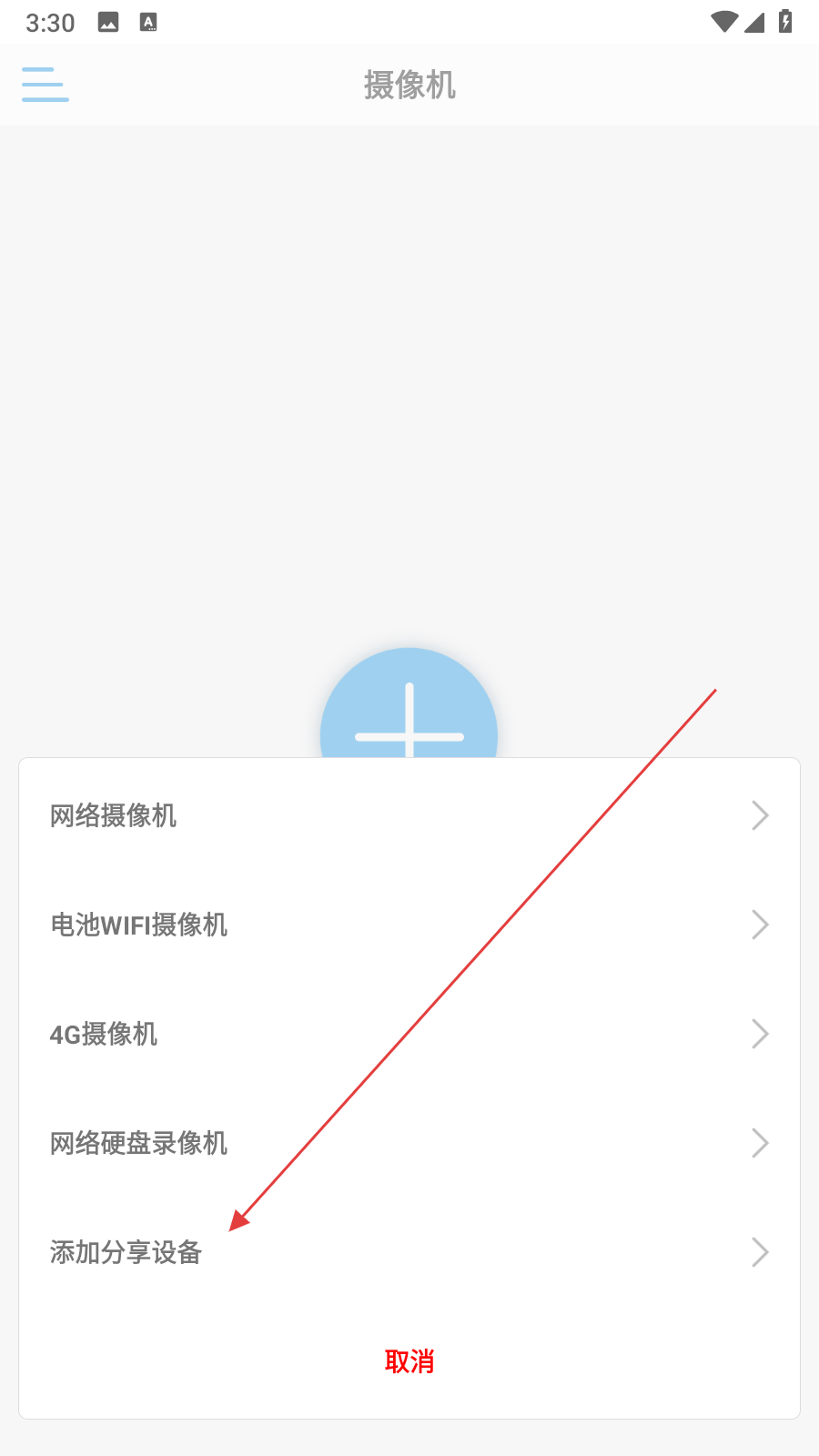 2、在彈出的菜單中根據(jù)自己的需求,選擇添加分享設(shè)備,進(jìn)入掃描二維碼界面。