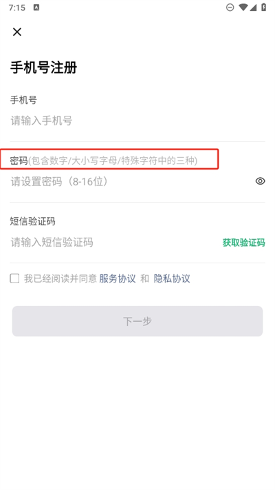 3、針對賬號注冊的密碼要求上有一些不同,該軟件在密碼的設置上需要包含數(shù)字/大小寫字母/特殊字符中的三種;