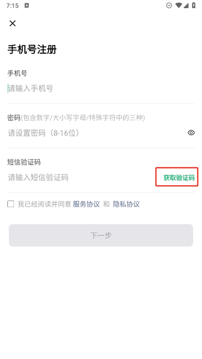 4、等你們輸入好自己注冊的手機和設置好登錄密碼后,可以獲取驗證碼輸入后直接進行注冊即可登錄了。