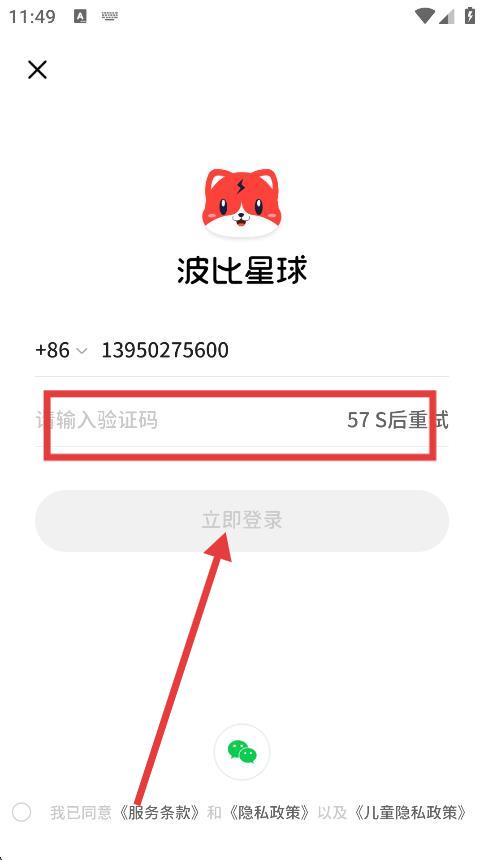 4、填寫收到的驗(yàn)證碼,點(diǎn)擊立即登錄,即可完成注冊(cè)。