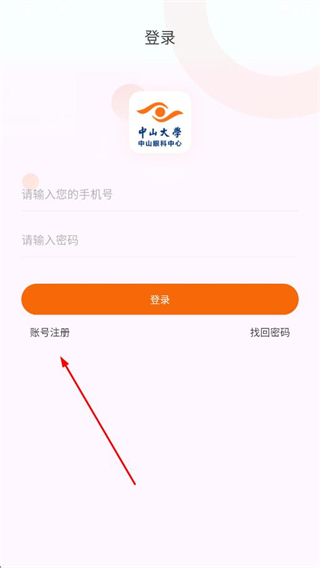 1、打開中山眼科中心APP,在登錄頁(yè)面點(diǎn)擊賬號(hào)注冊(cè)。