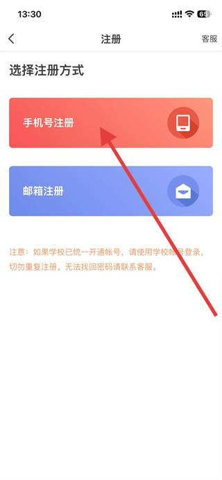 2、在選擇注冊(cè)方式頁(yè)面,找到并點(diǎn)擊上方的手機(jī)號(hào)注冊(cè)。
