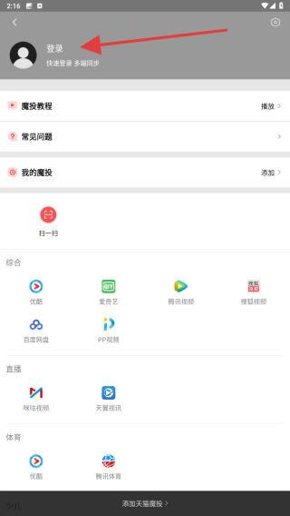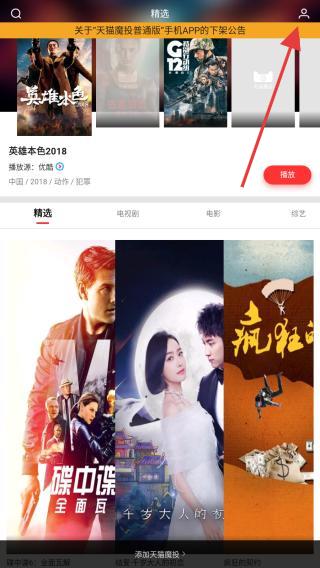 1、打開天貓魔投APP,在首頁內(nèi)點(diǎn)擊右上角人像的圖標(biāo)。