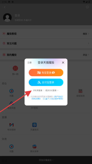3、在彈出的登錄方式中,點(diǎn)擊手機(jī)號登錄。
