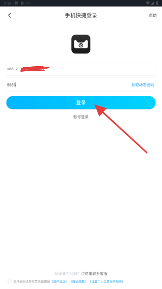 4、在登錄的頁面內(nèi),輸入要登錄的手機(jī)號、動(dòng)態(tài)密碼,輸入后再點(diǎn)擊登錄的按鈕即可。