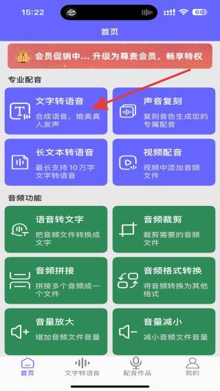 1、打開文字轉(zhuǎn)語音助手APP,在首頁內(nèi)點擊文字轉(zhuǎn)語音的功能按鈕。