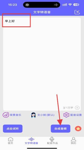 2、進入到該頁面內(nèi),在輸入框輸入文字信息,再點擊右下方合成音頻的按鈕。