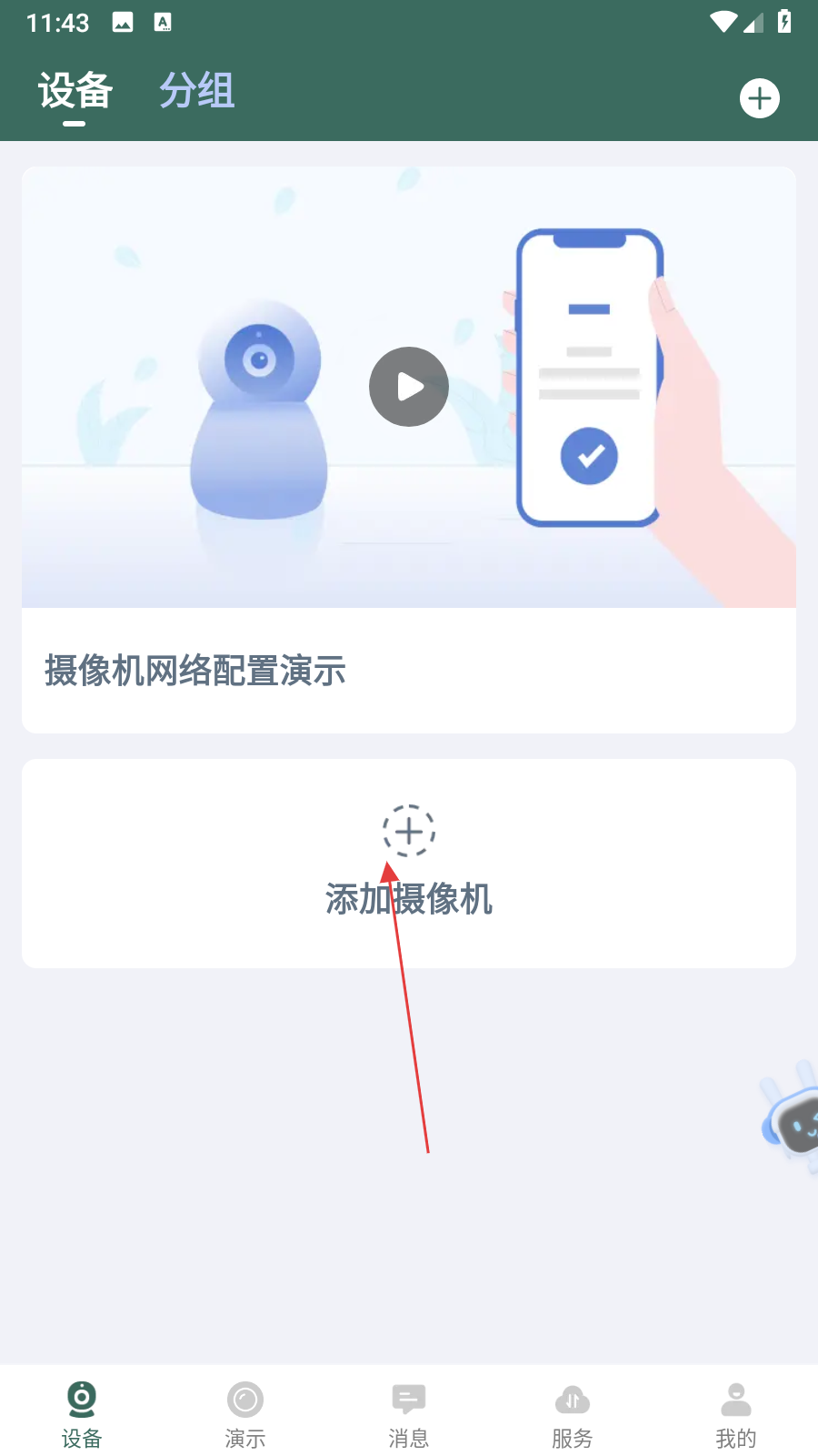1、打開鐳威視云應(yīng)用,進(jìn)入設(shè)備頁面,點(diǎn)擊添加攝像機(jī)按鈕,進(jìn)入發(fā)現(xiàn)附近設(shè)備界面。