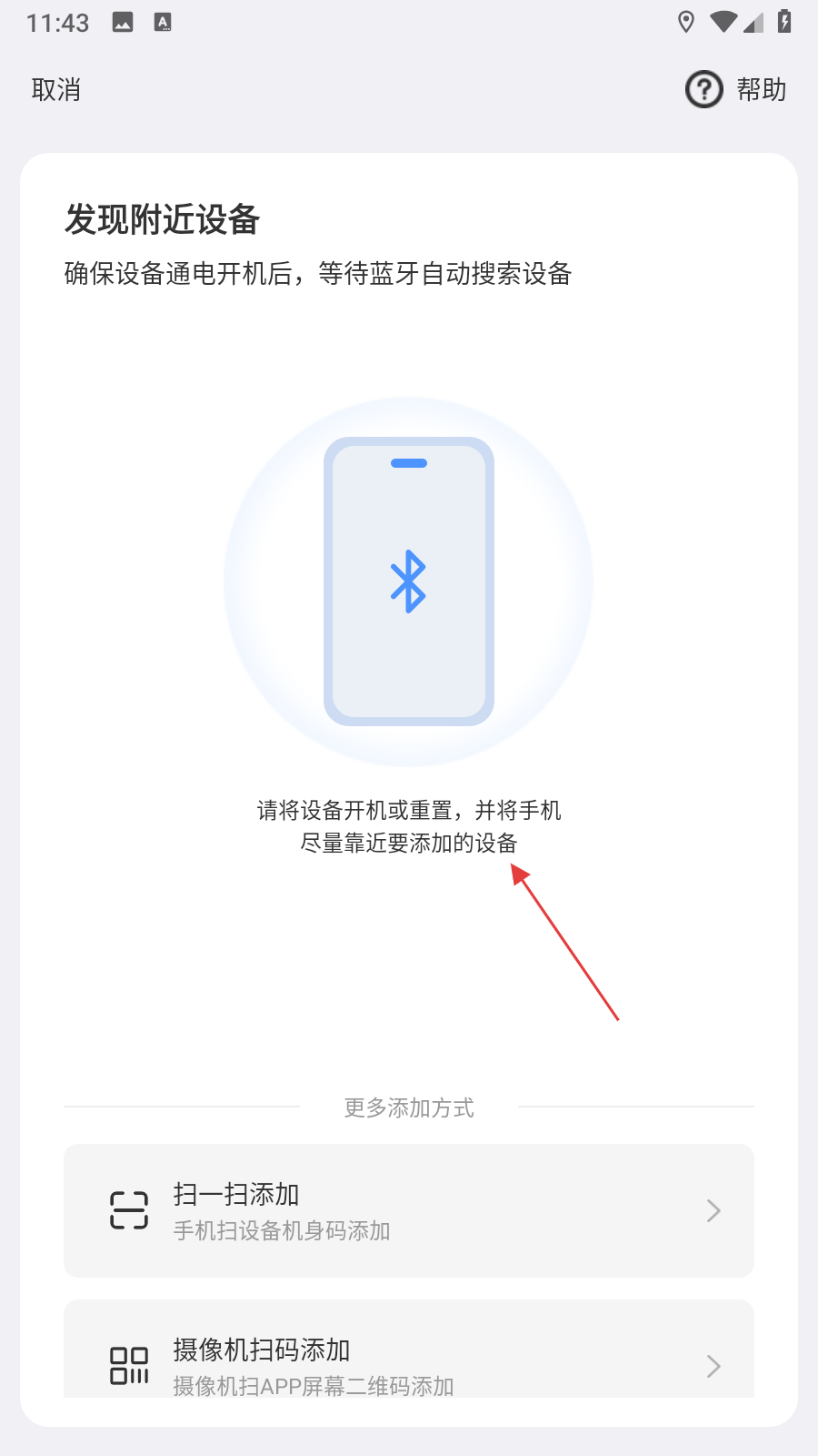 3、如果連接不上,向上滑動(dòng)選擇更多添加方式,如掃一掃添加,選擇對(duì)應(yīng)添加方式,按提示完成設(shè)備配對(duì)與網(wǎng)絡(luò)配置,即成功添加。
