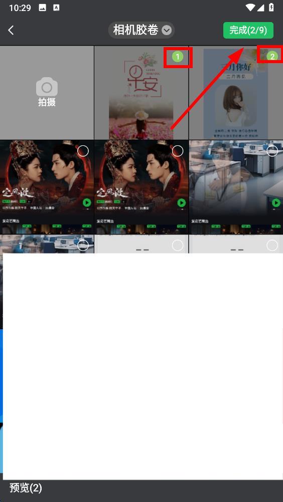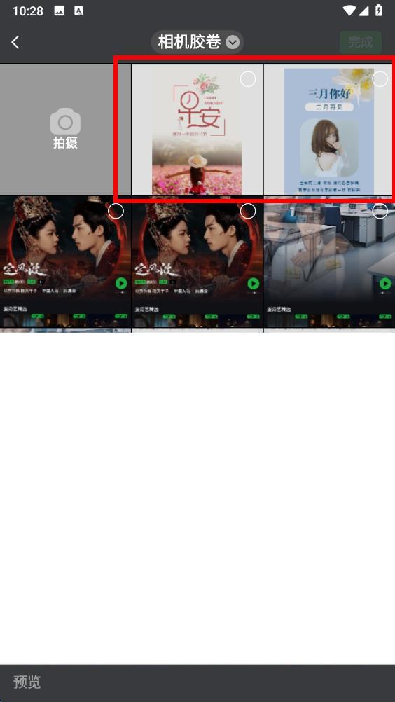 3、通過勾選圖片右上角的圓圈確認圖片后,點擊右上角完成按鈕,進入拼圖編輯頁面。
