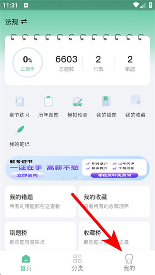 1、在才士題庫(kù)的首頁(yè),這邊需要點(diǎn)擊底部我的,進(jìn)入個(gè)人的頁(yè)面。